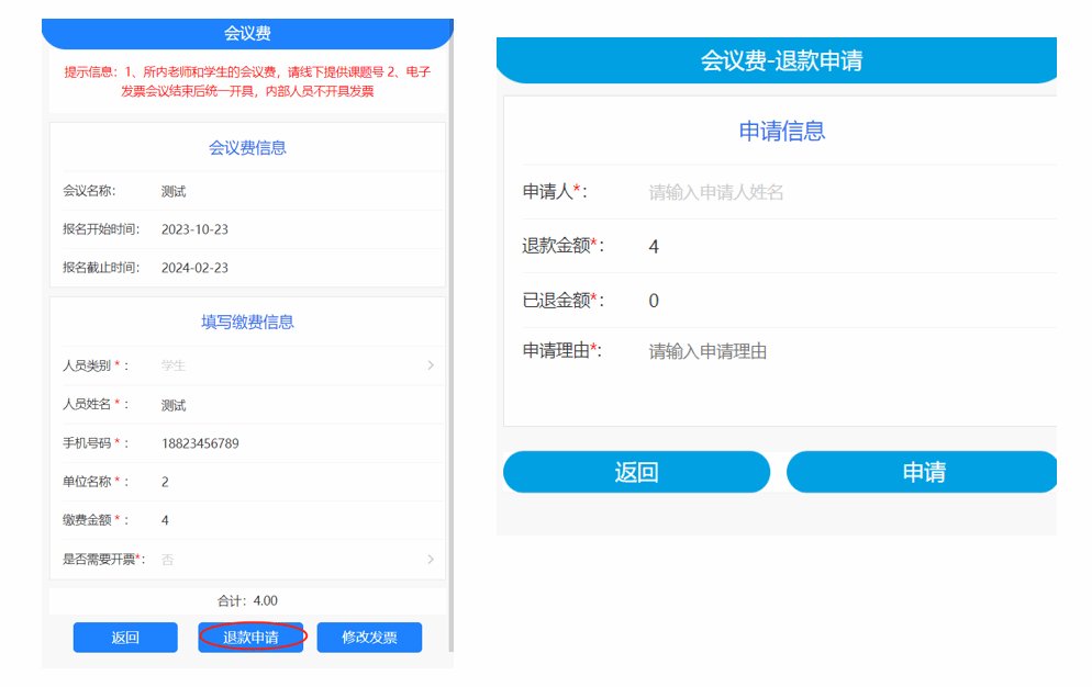 1.用户若需退款,进入公众号“中国科学院数学院财资处”,点击左下方“综合缴费”