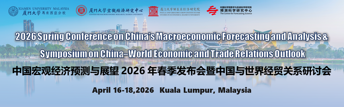 The 2026 Spring Conference on China’s Macroeconomic Forecasting and Analysis & Symposium on China–World Economic and Trade Relations Outlook will be held at Xiamen University Malaysia in Kuala Lumpur from April 16 to 18, 2026. Co-organized by Xiamen University Malaysia, the Center for Macroeconomic Research of Xiamen University, the Paula and Gregory Chow Institute for Studies in Economics of Xiamen University, and the AMSS Center for Forecasting Science of the Chinese Academy of Sciences, this conference aims to establish a high-level academic platform for scholars and experts worldwide to share in-depth insights and cutting-edge research findings, and to collectively explore key issues and development trends in macroeconomic forecasting, international trade, and global economic cooperation. We sincerely invite researchers, scholars, and practitioners from universities, research institutes, and relevant industries to submit research papers and participate in this academic feast.